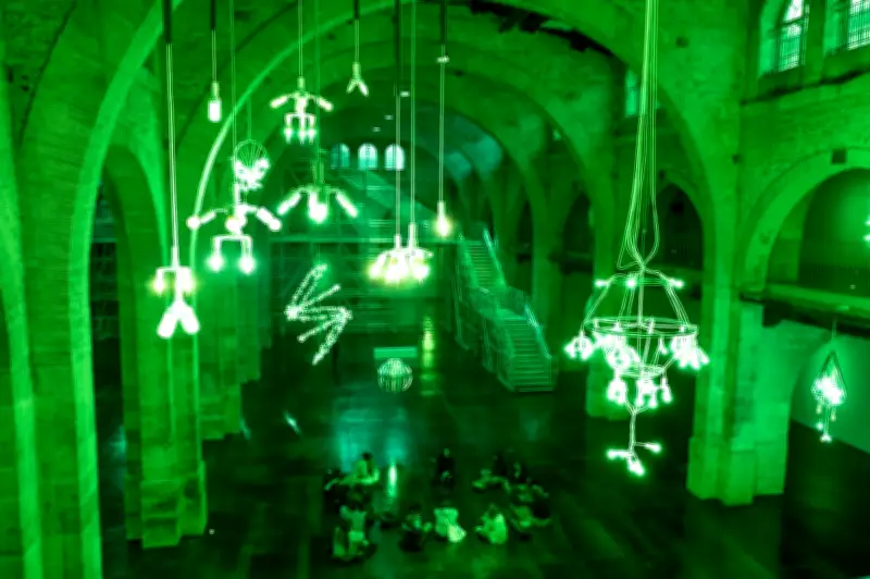 L'artiste hongkongais Trevor Yeung investit la nef du CAPC avec « Jardin des neuf soleils », une installation poétique inspirée d'un mythe chinois ancien. Dans cette légende, dix soleils apparaissaient chaque jour jusqu'à ce qu'un archer n'en laisse qu'un seul. Yeung propose un sanctuaire aux astres déchus, créant un environnement immersif baigné de lumière verte.