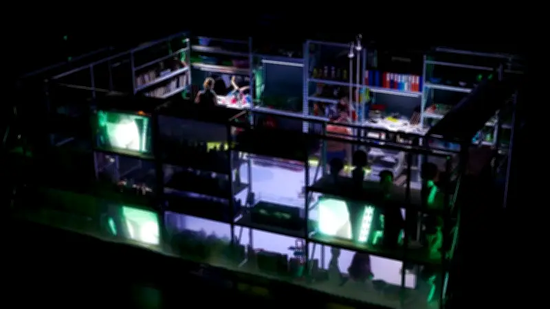 Le spectateur est immédiatement plongé dans une expérience sensorielle unique. Installé en configuration bifrontale, le public découvre une chambre close aux parois tendues d'une toile translucide. Derrière cette membrane se devinent :