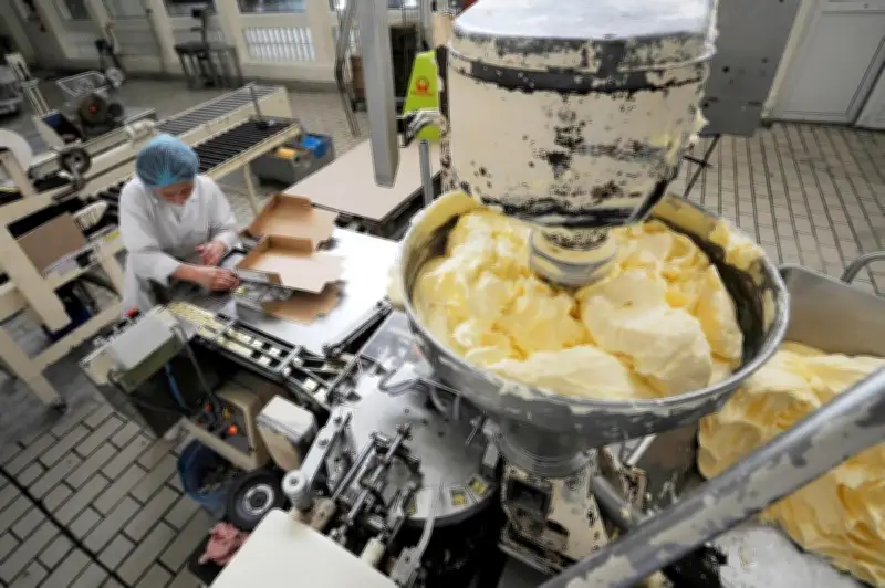 Les images d'archives montrent chaque étape clé : de l'arrivée des livraisons de lait à la laiterie, en passant par la chaîne de fabrication où les plaques de beurre prennent forme, jusqu'au stockage final. Ces visuels illustrent l'importance de cette activité pour l'économie locale et le patrimoine culinaire de la région.