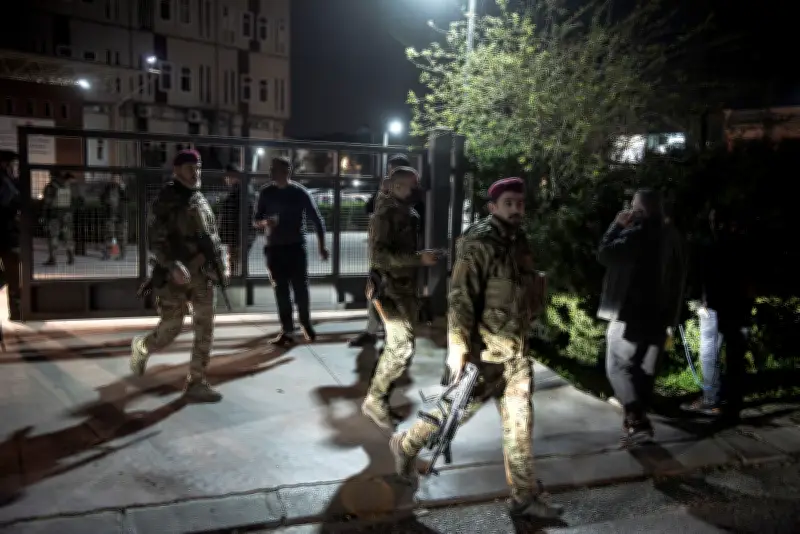 Des habitants quittent leur immeuble après que des débris d’un drone iranien ont touché leur bâtiment à Erbil. Les résidents d’Ankawa, le vieux quartier chrétien d’Erbil, la capitale du Kurdistan irakien, se retrouvent malgré eux plongés dans les remous de la guerre en raison de la proximité de l’aéroport international où se trouve une base militaire américaine.