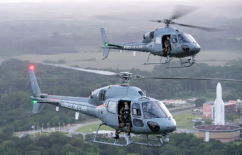Deux hélicoptères, généralement des Fennec équipés de tireurs embarqués, sont déployés depuis la base aérienne 367 de Cayenne. « Pendant tout le DPSA, les hélicoptères sont en alerte au sol, avec un préavis très court », poursuit la lieutenant-colonel Julie. « Environ 30 minutes avant le départ de la fusée, ils sont en alerte en vol, pour être encore plus réactifs. Ils se placent alors de chaque côté du centre spatial pour être en mesure de contrer la menace, d'où qu'elle vienne. »