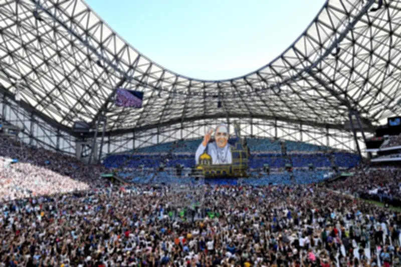 Le 23 septembre, le pape François, fan de football comme tout Argentin, a transformé l'antre de l'Olympique de Marseille en une véritable cathédrale. 57 000 fidèles ont pris place dans les tribunes. Un gigantesque tifo à son effigie a même été déployé dans le virage sud, provoquant un large sourire sur le visage du souverain pontife.