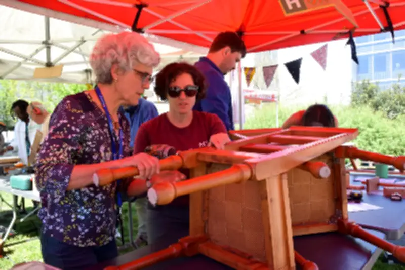 Au-delà des meubles, un stand de chirurgie est dédié à la couture, géré par l'association Recup'r. Lilou, Agnès et Camille y confectionnent des porte-gourdes pour vélos à partir de tissus récupérés. Agnès, bénévole, exprime son aspiration : « embellir le quotidien ». Cette philosophie résume bien l'esprit de l'initiative, où les rires des participants couvrent le bruit des outils, dans une ambiance chaleureuse et engagée.