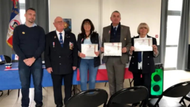 Avant de clore la séance et de partager le traditionnel verre et repas de l'amitié, le président a remis la médaille associative du Souvenir français à la vice-présidente, au secrétaire et à la secrétaire adjointe. Cette distinction symbolique salue leur engagement actif et leur dévouement au sein du comité, soulignant l'importance du bénévolat dans la réussite des missions de l'association.