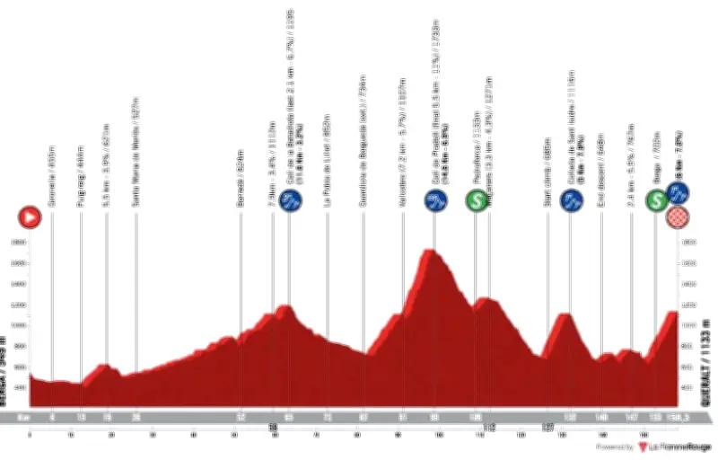 - Queralt : l'ascension finale de 5,9 kilomètres avec une pente de 7,5%, susceptible de provoquer des attaques décisives.