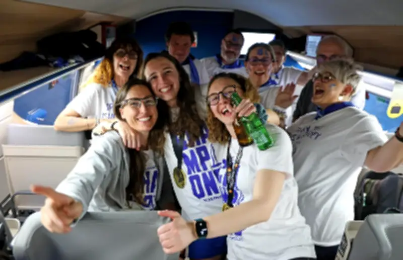 Joueuses et supporteurs ont pu célébrer ensemble la victoire en Coupe de France, samedi 25 avril, avant de basculer vers un nouveau défi : la demi-finale du championnat face à Montpellier dès mercredi. Basket Landes a décroché sa troisième Coupe de France ce samedi 25 avril, et après la victoire, vient l’habituel retour en train dans les terres landaises des joueuses et supporteurs. Un peu moins de quatre heures de trajet durant lesquelles la fête a pu se poursuivre encore un peu, alors que celle-ci avait commencé vers 6 h 30 du matin. Il est un peu plus de 20 h 30 lorsque le train démarre en gare de Paris-Montparnasse. Les visages et les voix commencent à fatiguer, mais peu importe...