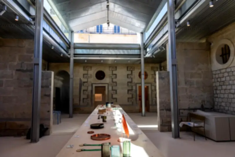 L’agence d’architecture Antoine Dufour a œuvré pour rendre le lieu plus lisible et reconnecter deux périodes historiques : l’hôtel particulier du XVIIIe siècle et l’ancienne prison du XIXe siècle. Un nouveau pavillon de liaison, en verre et acier, fait désormais le pont entre ces bâtiments. Cette structure favorise une ouverture maximale à la lumière naturelle, mettant en valeur la blondeur caractéristique de la pierre bordelaise et créant une atmosphère aérée et lumineuse.