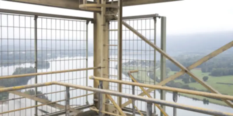 Vue depuis la grande tour de préchauffage de la cimenterie de Vicat, à Montalieu-Vercieu, en Isère, le 1ᵉʳ octobre 2025. Ce ne sera pas la panacée pour éliminer tout le dioxyde de carbone (CO2) émis en France, mais il n'empêche : le gouvernement français veut voir émerger une filière d'excellence autour du CCUS.