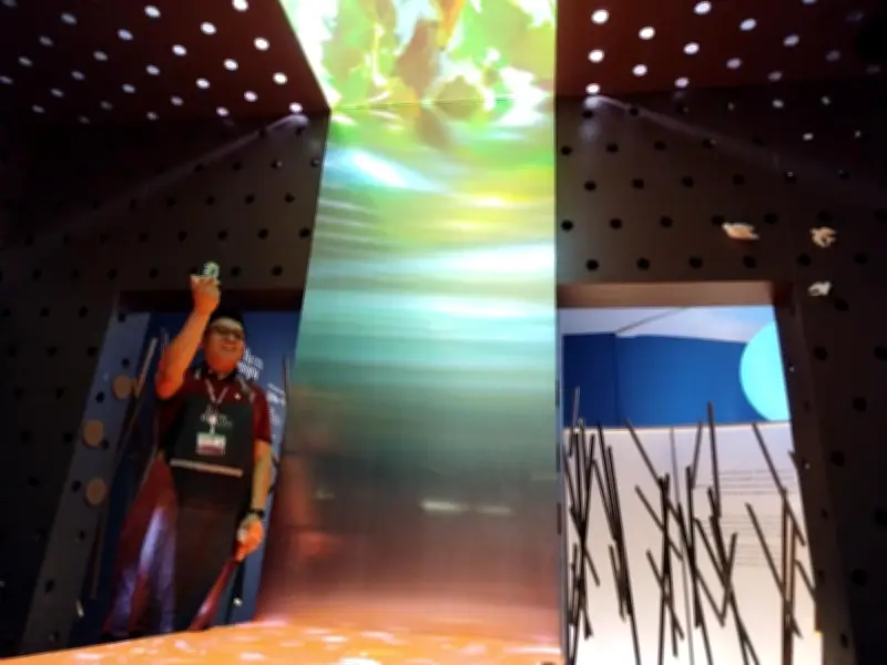 Rouge, rosé ou blanc ? Cette interrogation, en apparence simple, se révèle être une véritable énigme pour les participants. Elle survient à la fin du parcours, devant le pavillon de l'hiver, où 37 écrans plongent les spectateurs dans des paysages enneigés ou l'ambiance chaleureuse d'un chalet de montagne. La réponse n'est pas aussi évidente qu'il y paraît.